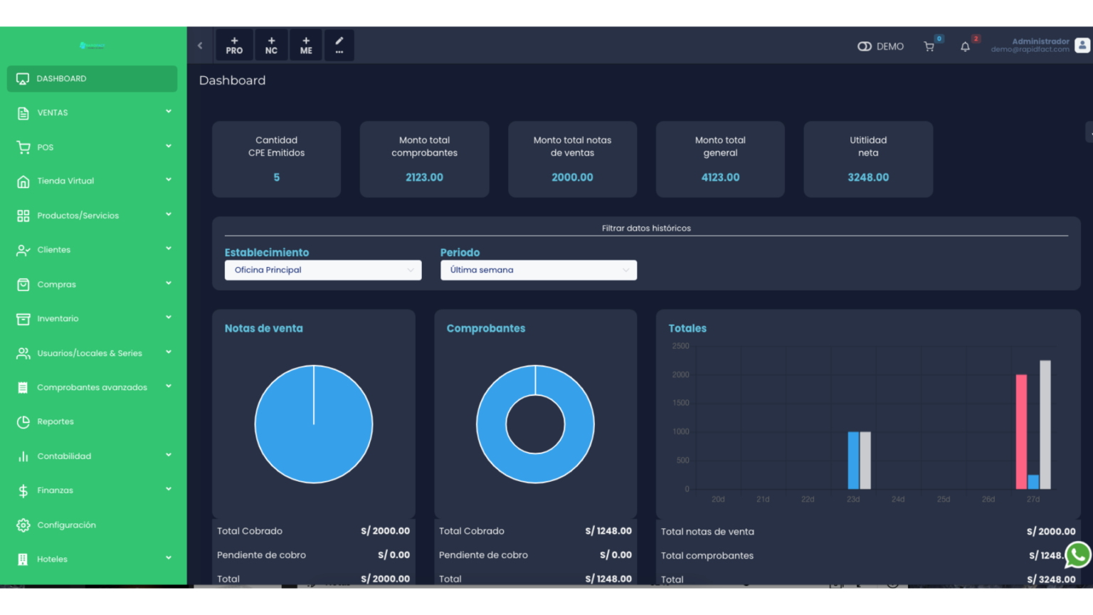 En este video te mostraremos cómo utilizar nuestro sistema de facturación para gestionar tus ventas de manera eficiente. Aprenderás a utilizar el dashboard principal para verificar tus estadísticas, ingresos, egresos y productos. Te enseñaré cómo crear facturas electrónicas y boletas, agregar productos, configurar formas de pago, enviar comprobantes por correo electrónico y WhatsApp, y generar reportes de ventas y finanzas. ¡No te lo pierdas!